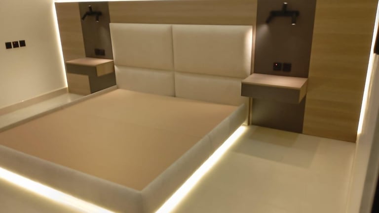 Our collection includes elegant dressing tables, comfortable hotel-style beds, modern wardrobes, kids’ beds and desks, stylish nightstands, luxurious entryways, modern wall shelves, and premium TV units — all thoughtfully crafted to add a touch of elegance and sophistication to your home.